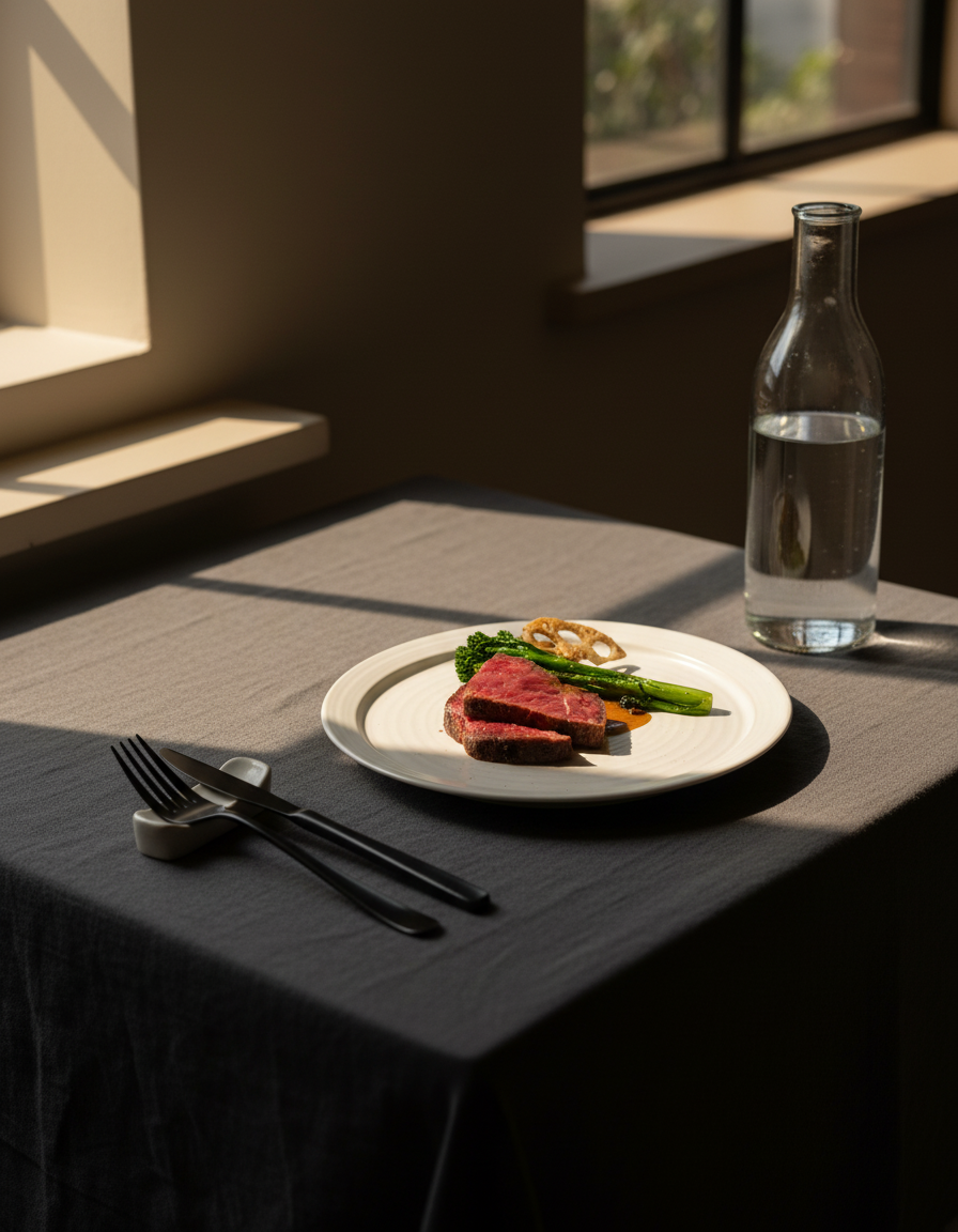 낮이 아닌 황혼 시간대를 활용하여 감성적이고 몽환적인 분위기를 조성하며, 제품에 스토리와 감정을 부여합니다.